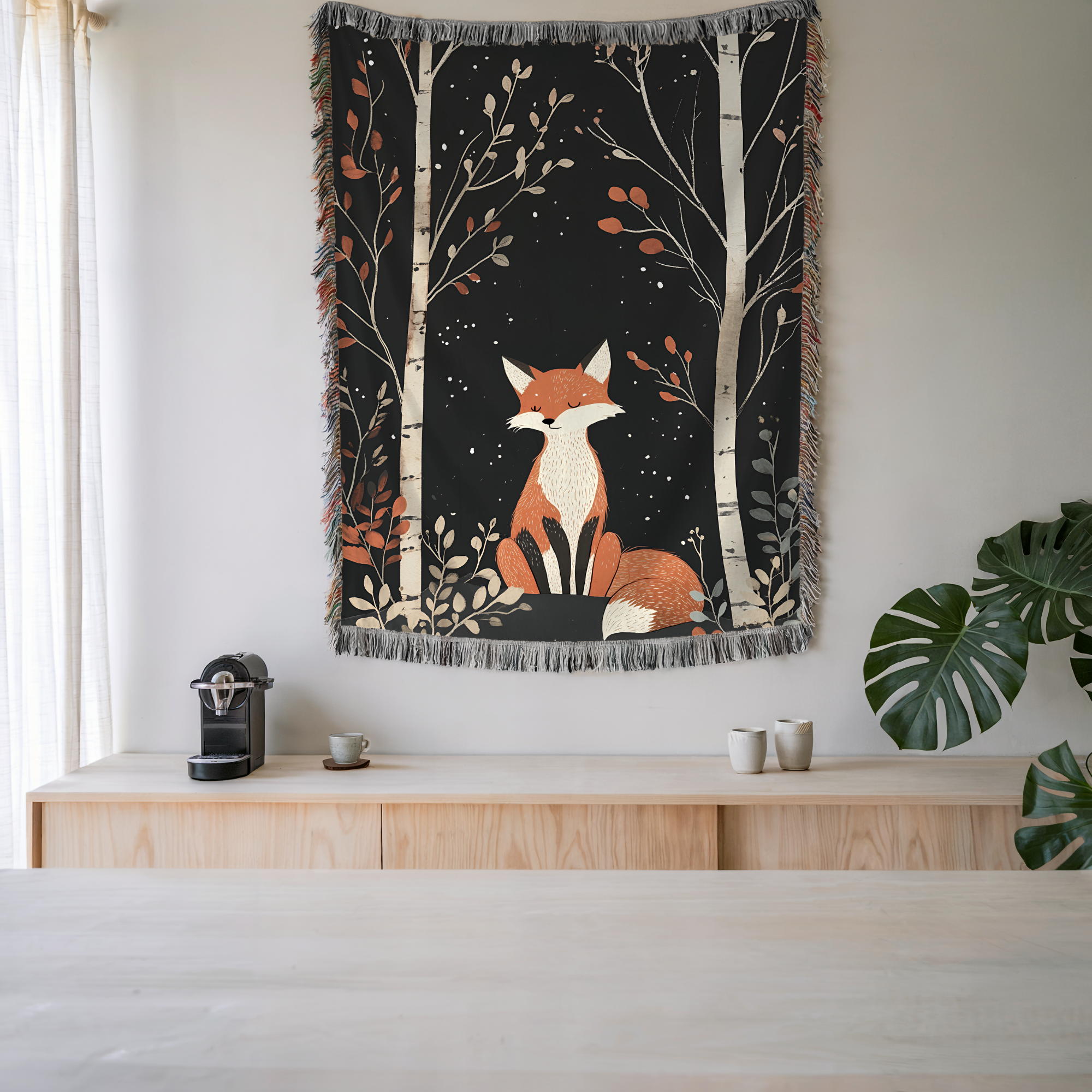 Arctic Fox Scandinavian Style Woven Blanket Tapestry