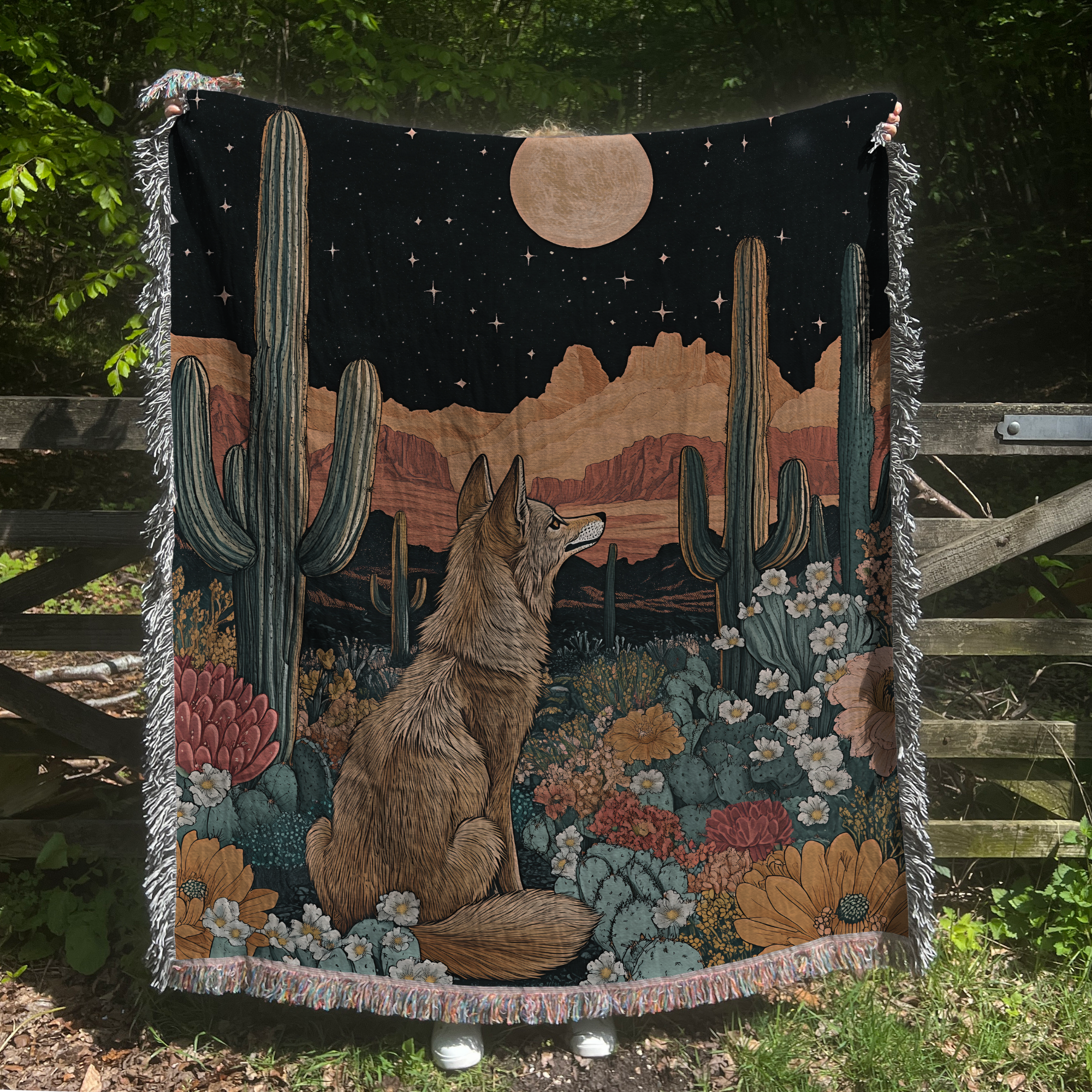 Desert Night & Coyote Woven Blanket 100% Cotton